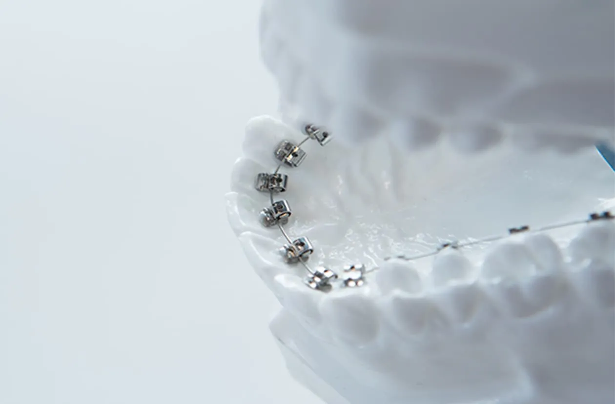 - ・唇側(表側)ブラケット矯正装置(ラビアルブラケット矯正装置)に比べて、硬くて太いワイヤーへの交換に時間がかかることから治療期間が長くなることがあります。